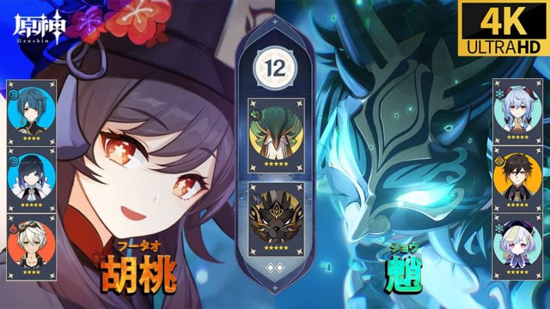 【原神】胡桃蒸発PT 魈璃月PT 深境螺旋12層攻略 Hu Tao Xiao Genshin Impact 4K (げんしん)
