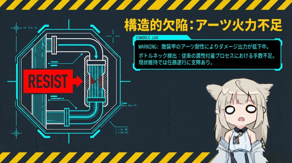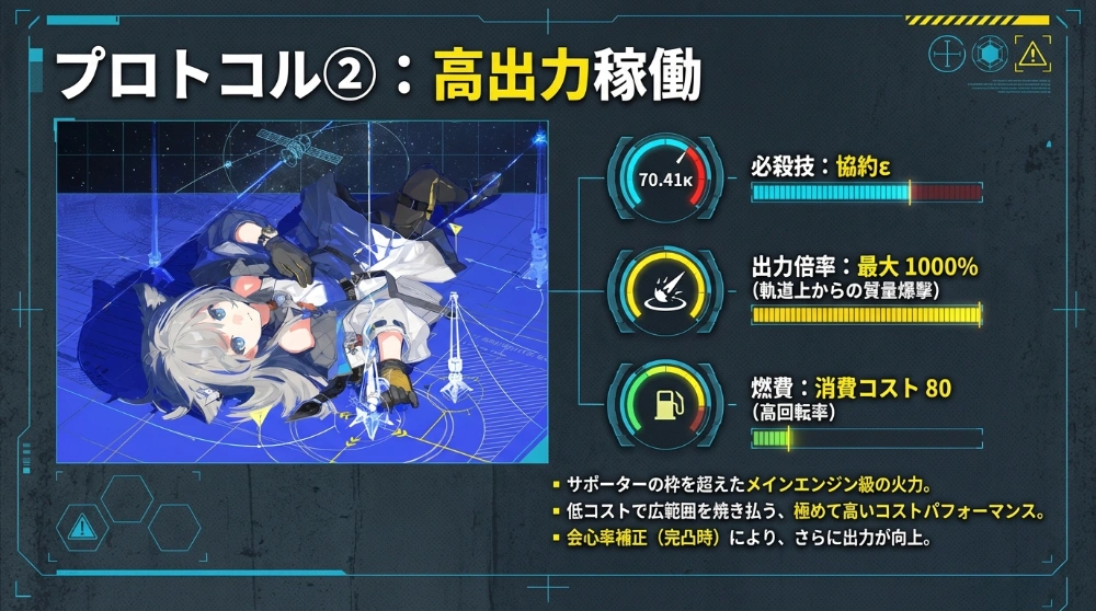「将来的に上位互換の実装を恐れる必要がない」と言われるのは、このシンプルな「強制感電」と「高倍率デバフ」の組み合わせが、アーツ編成における完成された解答だからです。