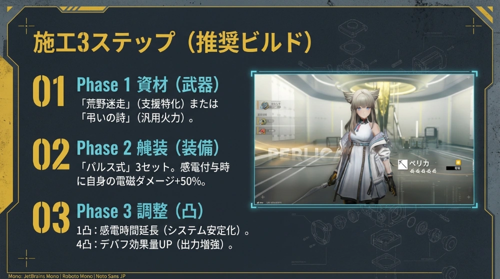 - 潜在突破4(4凸): 感電の異常段階を+1し、受けるアーツダメージUP効果を1.33倍に強化。この別格のデバフ倍率に達したペリカは、もはやレアリティの枠を超えた存在となります。