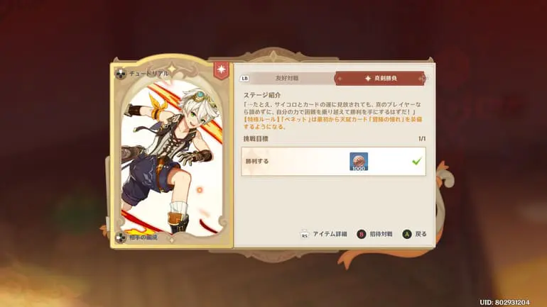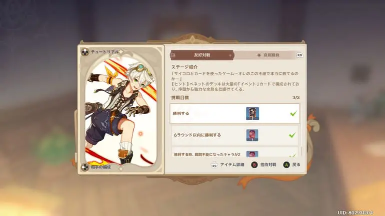- ベネット・友好対戦の挑戦目標を3つクリア